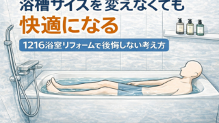 浴槽サイズを大きくしないと快適にならない?実は1216サイズでも工夫次第で体感は大きく変わります。リフォーム現場目線で、後悔しない浴室の考え方と選択肢を整理します。