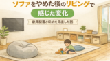 ソファをやめたことをきっかけに、家具配置や収納を見直し、
