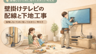 プチリフォーム 壁掛けテレビの配線と下地工事|後悔しないために知っておきたい考え方 壁掛けテレビを検討する際に知っておきたい、配線移設と下地工事の考え方を解説。リフォーム現場の視点から、後悔しやすいポイントや安心して進めるための判断基準を分かりやすくまとめています。 2026.01.10 プチリフォームリビング全ての記事家電、日用品